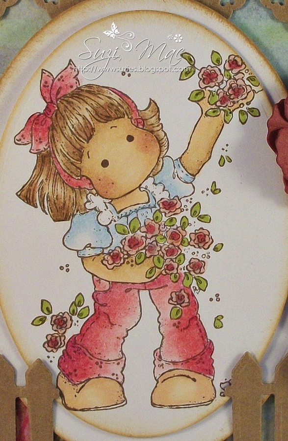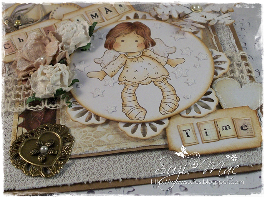 I've used 4 Magnolia stamps on my creation this week and they have all been coloured with Derwent soft pencils and sansador solvent. Always I will post a recipe list of ingredients at the bottom of my post for you.