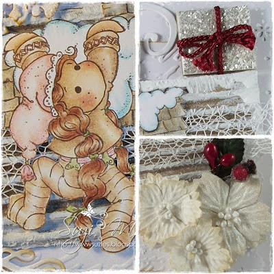 Snowy Roof and Pixie Tilda. Both have been coloured using Derwent soft pencils. I will pop a list of ingredients at the bottom of my post for you.